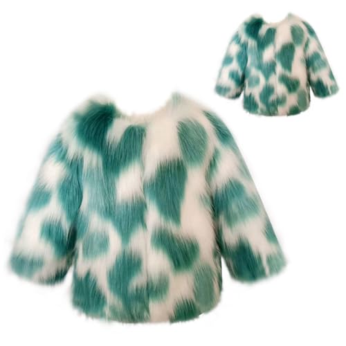 More information about Toddler Girls Faux Fur Jacket Long Sleeve Furry Color Block Coat Kids Windproof Warm Sweater for Festive Party
