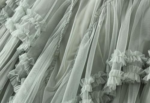 Womens Lace Tulle Skirts Asymmetric Ruffle A-line Skirts Elastic Waist Party Wedding Guest Skirt 2025 Summer Clothes 5