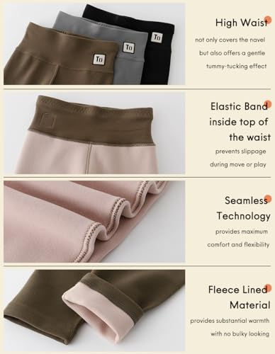 • High-waisted design fleece leggings girls includes an elastic waistband that not only covers the navel but also offers a gentle tummy-tucking effect, preventing slippage during play or exercise.
