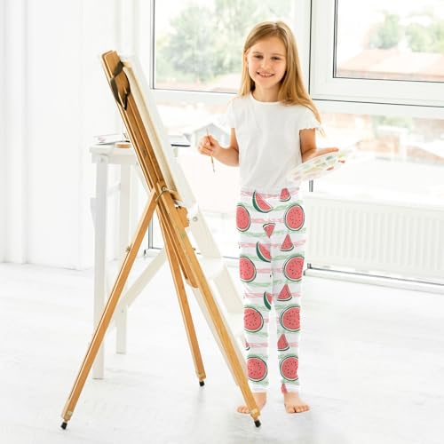 HOT ! Girls' Leggings Ankle Length Printed Leggings Watermelon Slice Stripe Green Soft Comfort Pants for Kids 4-10 Years