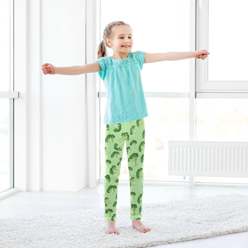 Wusikd Broccoli Florets Girls' Leggings Toddler Doodles Green Color Kids Yoga Pants Dance Active Tights 4T 7