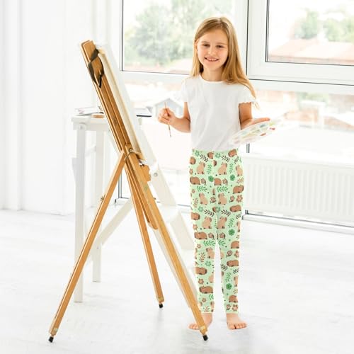 HOT ! Cute Capybara Green Flowers Girls Leggings Soft Comfortable Athletic Leggings Dancing Pants for 4-10 Years