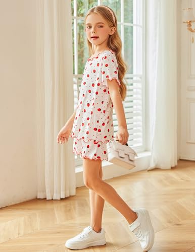 Arshiner Girls Pajama Set Short Sleeve Lounge Set Soft Shirring Summer Sleepwear Pj Sets 6