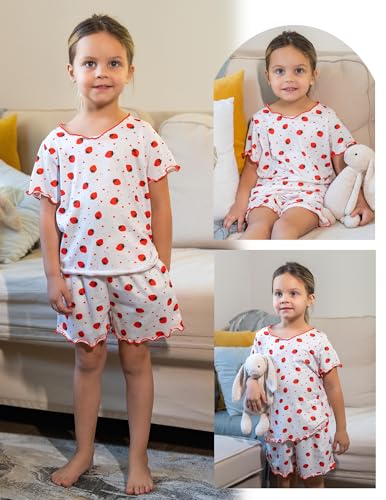 Arshiner Girls Pajama Set Short Sleeve Lounge Set Soft Shirring Summer Sleepwear Pj Sets 5