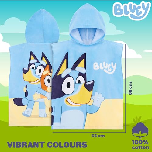 Bluey Towelling Poncho - Hooded Robe for Kids - One Size Cotton Changing Robe - Holiday Beach Poncho, Swimming, Bath (Blue/Orange) 1