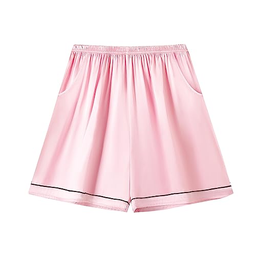 HOT ! Schbbbta Pajamas Set for Girls Silk Button Down Pjs Satin Short Sleeve Sleepwear 2 Piece Lounge Sets, Pink, 9-10 Years