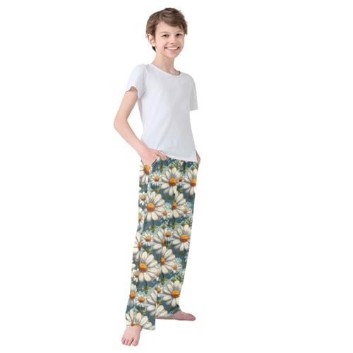 Pajama Pants Sleep Pants Soft Elastic Waist Pajama Lounge Pants Watercolor White Daisy for 6-14 Years Old 4