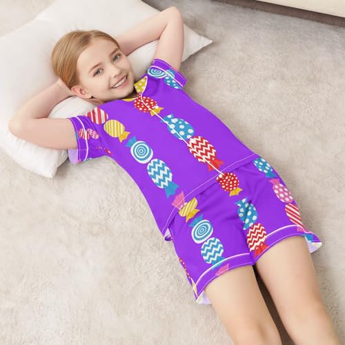 Satin Pajama Sets Short Sleeve Candy Bright Colorful Button Down Silky Nightwear 2 Piece PJS 5-14Y 5