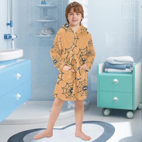 GuoChe Girls Bathrobe Spider Web Halloween Pattern Print Hooded Robe 4
