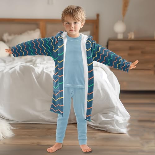 Bath Robe Girls Colorful Wave Pattern Hooded Pajama 7