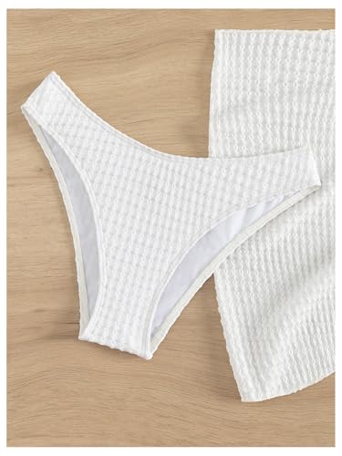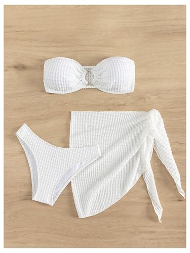 MakeMeChic Women's Bikini Sets Textured Ring Linked Bandeau Backless High Cut Swimsuit 6