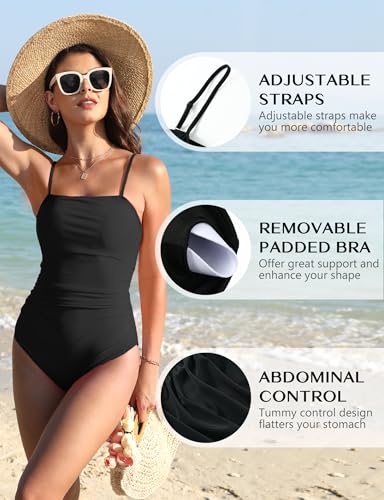 • 【Fashion Swimsuit】 Our one piece swimsuit features a square neck design that is elegant with a hint of sensuality. The straps are adjustable with hook and loop closure, allowing you to find the best elasticity and length for you and have the comfortable wearing experience. Low back design shows off your curves and charm. Removable padded bra provides full support and gives you the freedom of choice to change. These fashionable yet practical details are designed to ensure your beauty and comfort!