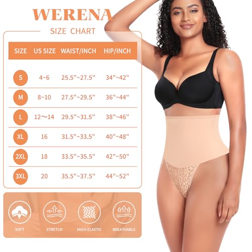 HOT ! Werena Tummy Control Thong Shapewear for Women Mid High Waisted Body Shaper Underwear Lace Shaping Thong Girdle Panties