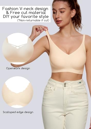 • 【V-Neck Smooth T-Shirt Bra】The V-neck design of this ultra comfortable bra makes it look more sophisticated and versatile,it won't show in your low-necked tops so you'll have less worries about choosing a top to go with it. Adjustable straps mean you can tweak it to achieve the look you want, such as cross back for stability and support, or adjusting the length to make it more relaxing when you sleep. This wirefree bra has a simple look, but the details makes it anything but simple.