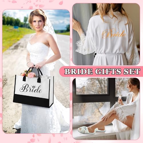 • Package Includes: you will receive 1 piece of 20 oz bride tumbler with straw and brush, 1 bridal robe, 1 cosmetic bag and canvas tote bag, 1 makeup mirror, 1 eye mask, 1 hair scrunchie, 1 jewelry box and 1 pair of plush slippers; All of them are printed with [Bride]; This gift set features items that cater to various aspects of daily life, ensuring a well rounded experience