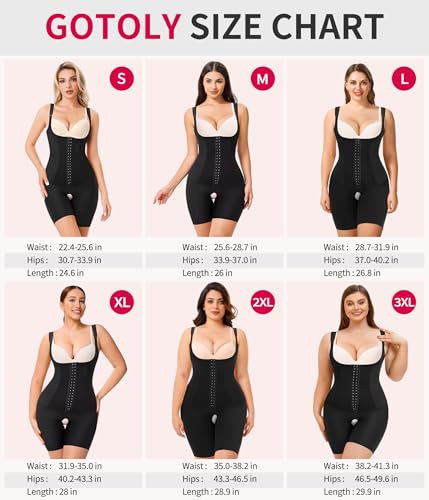• Gotoly Faja Full Body Shaper for Women Warm Tips: Please measure your waistline(one inch above the navel) and hip. Choosing your size from our size chart. About washing conditions, for long term use, we advise you hand-wash.