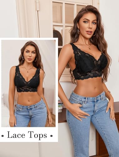 Avidlove Bralettes for Women Lace Bra Longline Bralette Deep V Triangle Sexy Everyday Lingerie Bras Non Padded 3