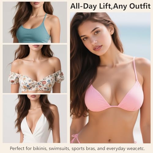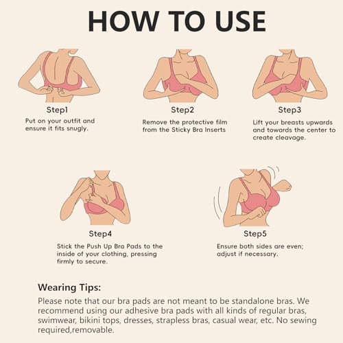 • Instant Lift & Natural Curves: Experience an instant lift and enhanced cleavage with our sticky push-up bra pads. These double-sided adhesive bra inserts are designed to provide a natural, eye-catching shape, blending seamlessly under any outfit, from regular bras to swimwear, bikinis, and evening gowns. Ideal for small and medium breasts, they can boost up to 2 cup sizes.