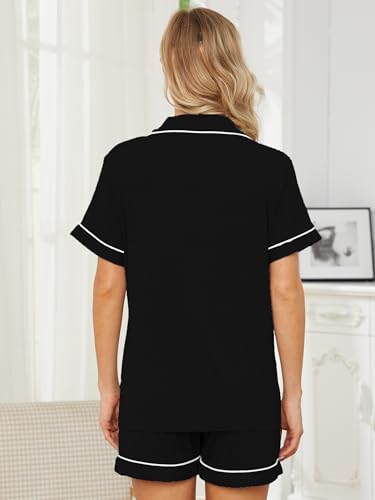 • 【Classic Design】Two-Piece short sleeve pajama set is crafted with contrast piping, left chest pockets, notch collar, pj shorts feature adjustable and elastic waist drawstrings. The button down pajamas women is perfect for daily wear and nursing your newborn at home.