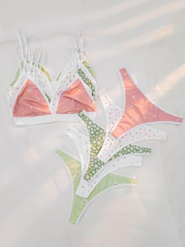More information about Women's 5 Sets Matching Bra and Panty Set Polka Dots Print Lingerie Set Triangle Bralettes and Low Rise Thong Set