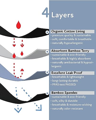 • Immerse yourself in a world of luxurious comfort with our premium period boyshorts. Crafted with care using viscose made from bamboo (body), terry viscose made from bamboo (absorbent layer), and organic cotton (crotch lining), these top-quality materials provide a SAFE, SOFT, and SUSTAINABLE option. Experience unmatched breathability, ultimate softness, and the superior comfort you deserve.