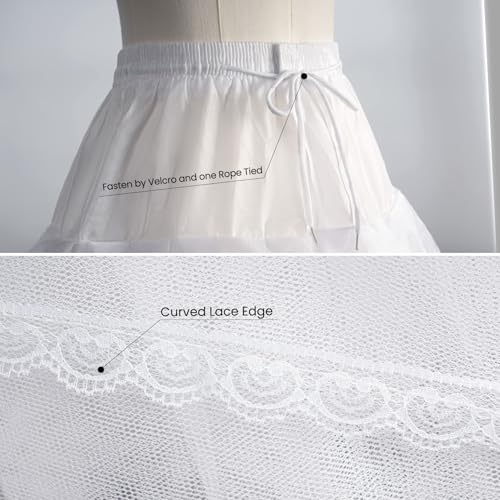More information about Petticoat Skirt for Women Under Dress, 8 Layer Puffy Hoop Skirt for Bridal Wedding Dresses, Crinoline Underskirt for Women with Hoopless Design, Adjustable Waist Size, and Curved Lace Edge