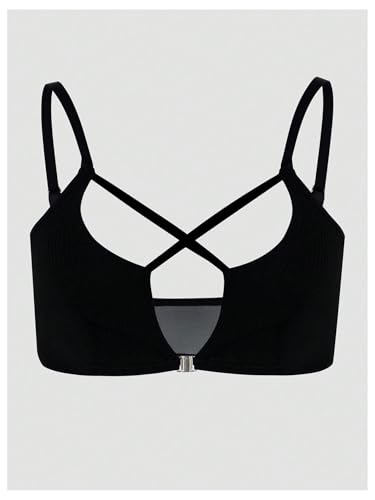 SOLY HUX Front Closure Bras for Women Strappy Bralette Wireless Criss Cross Cut Out Knitted Everyday Bra 6