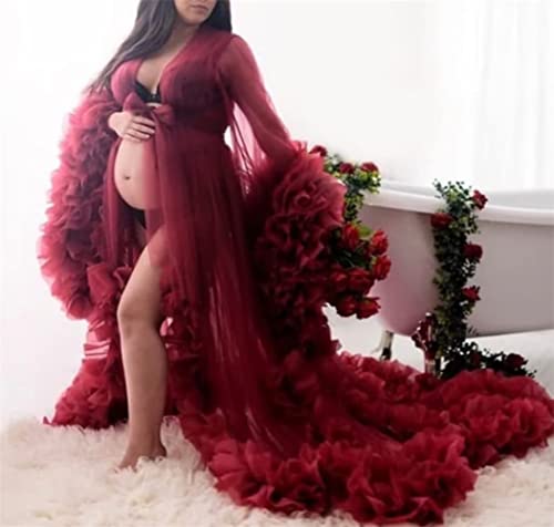 • ♥Style:Tulle robe maternity photoshoot for women mother's day, sheer v neck puffy long sleeves ruffles layered tulle high waist ball gown plus size maxi robes floor length oversize tulle robe for maternity photoshoot slit split.