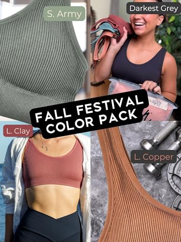 • 4-Pack Women’s Ribbed Bralette: Pullover design with Thick Straps (wide strap). Thick enough to wear as a cute crop top, supportive enough to wear as a sports bra for workouts. Full coverage front. Scoop or U neck. Lightly Lined. Quick Drying. Check out our numerous color options above. Pads are removable. No underwire.