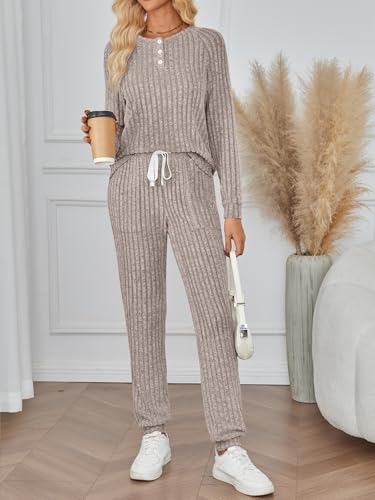 • MATCH: Matching sets women clothing wear with sneakers for a casual outing or as cozy loungewear at home. Its neutral colors make it easy to mix with other wardrobe pieces, and it can be layered with a cardigan or jacket for extra warmth in colder weather