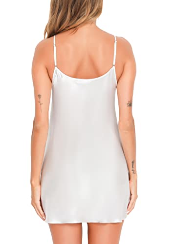 Vlazom Satin Nightshirts Sexy Silk Nightdress Spaghetti Strap Short Negligee Chemise Slip with Deep V Neck 5