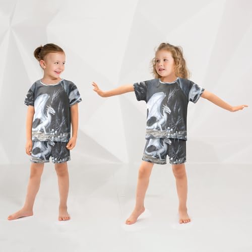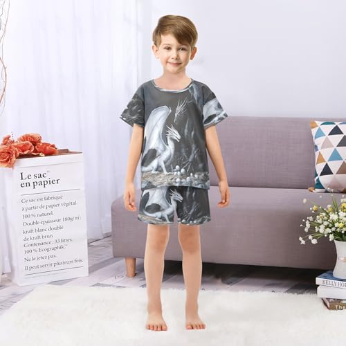 ALAZA Black White Dragon Egg Pajamas Set Short Sleeve Cotton Sleepwear Summer Pjs 2 Piece 5-14Y 6