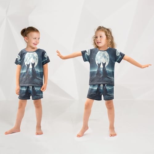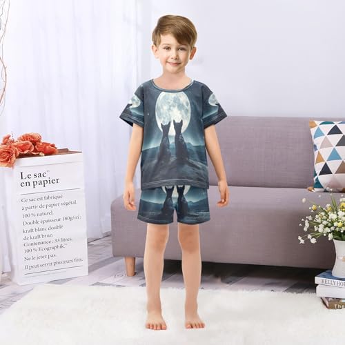 ALAZA Dog Moon Night Pajamas Set Short Sleeve Cotton Sleepwear Summer Pjs 2 Piece 5-14Y 6