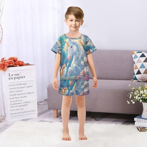 More information about ALAZA Unicorn Cat Kitten Butterfly Flower Pajamas Set Short Sleeve Cotton Sleepwear Summer Pjs 2 Piece 5-14Y