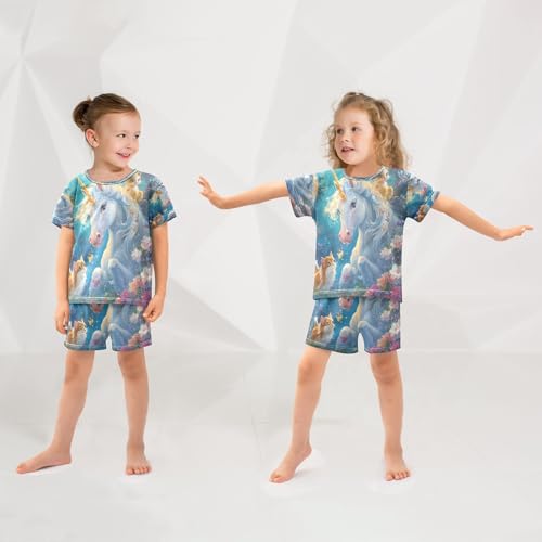 ALAZA Unicorn Cat Kitten Butterfly Flower Pajamas Set Short Sleeve Cotton Sleepwear Summer Pjs 2 Piece 5-14Y 2
