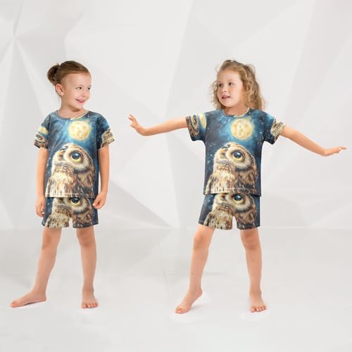 ALAZA Owl Moon Night Watercolor Pajamas Set Short Sleeve Cotton Sleepwear Summer Pjs 2 Piece 5-14Y 6