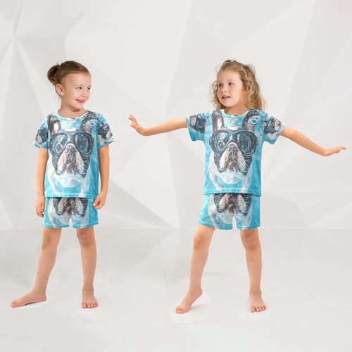 ALAZA Bulldog Dog Water Bubble Pajamas Set Short Sleeve Cotton Sleepwear Summer Pjs 2 Piece 5-14Y 6