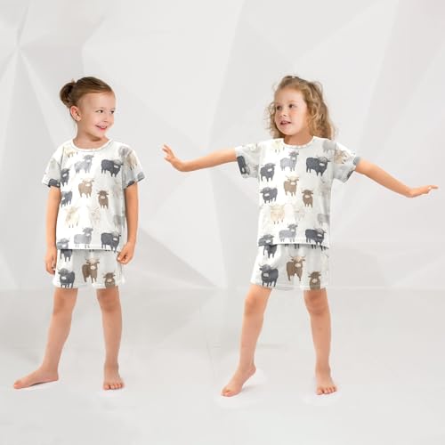 ALAZA Highland Cow Cartoon Funny Pajamas Set Short Sleeve Cotton Sleepwear Summer Pjs 2 Piece 5-14Y 2