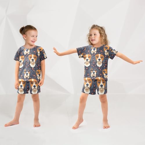 ALAZA Beagle Dog Love Heart Pajamas Set Short Sleeve Cotton Sleepwear Summer Pjs 2 Piece 5-14Y 2