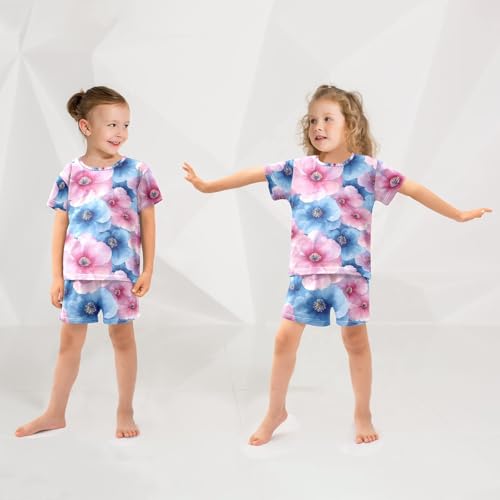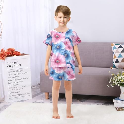 ALAZA Blue Painting Blossom Pajamas Set Short Sleeve Cotton Sleepwear Summer Pjs 2 Piece 5-14Y 5
