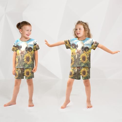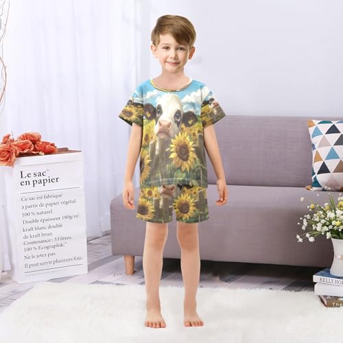 ALAZA Milk Cow Sunflower Blossom Pajamas Set Short Sleeve Cotton Sleepwear Summer Pjs 2 Piece 5-14Y 6