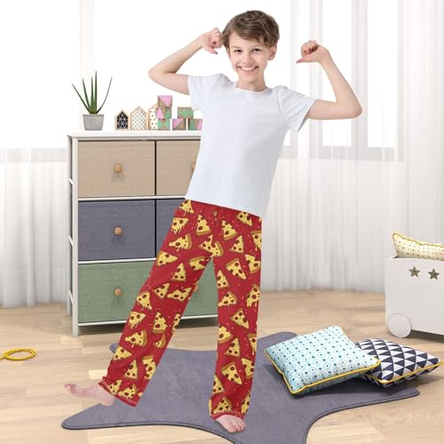 HOT ! Red Pizza Cute Pattern Cute Pajama Pants, Soft Sleepwear Lounge Pants Pajama Pj Bottoms for 6-14 Years