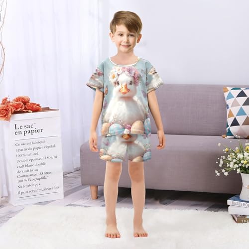 ALAZA Easter Duck Butterfly Egg Pajamas Set Short Sleeve Cotton Sleepwear Summer Pjs 2 Piece 5-14Y 1