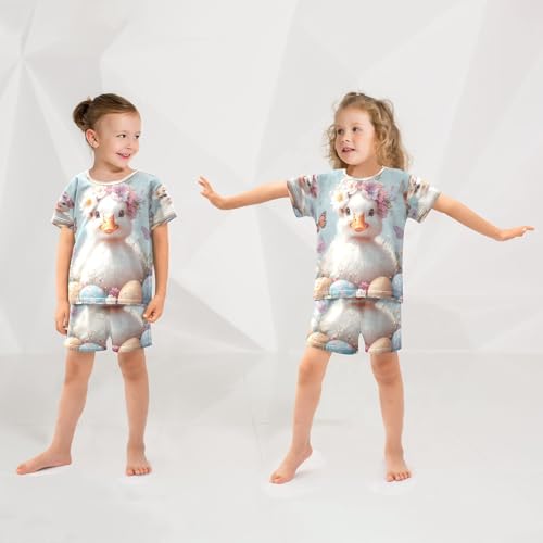 ALAZA Easter Duck Butterfly Egg Pajamas Set Short Sleeve Cotton Sleepwear Summer Pjs 2 Piece 5-14Y 2