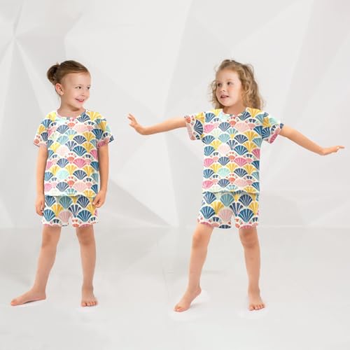 ALAZA Geometric Seashell Pajamas Short Sleeve 2 Piece Sleepwear Top and Bottom Pajama Set Unisex 2