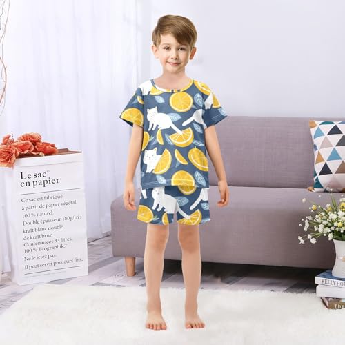 ALAZA Cat Kitten Lemon Blue Pajamas Short Sleeve 2 Piece Sleepwear Top and Bottom Pajama Set Unisex 6