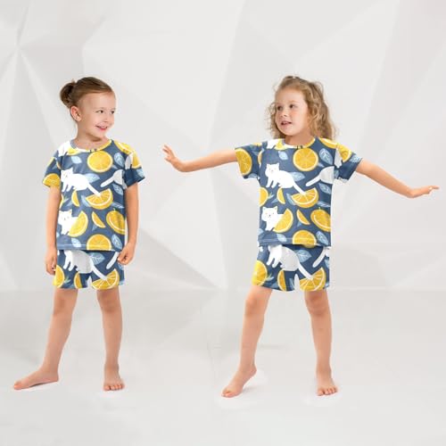 ALAZA Cat Kitten Lemon Blue Pajamas Short Sleeve 2 Piece Sleepwear Top and Bottom Pajama Set Unisex 2