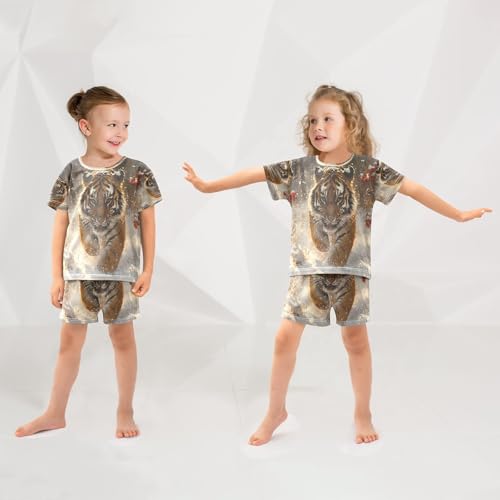 ALAZA Tiger Winter Stylish Pajamas Set Short Sleeve Cotton Sleepwear Summer Pjs 2 Piece 5-14Y 2