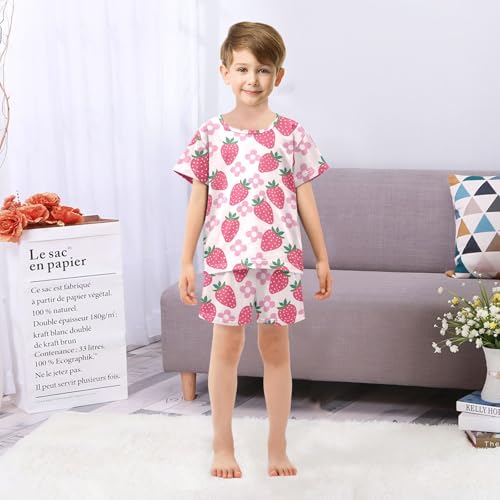 ALAZA Strawberry Flower Floral Fruit Pajamas Short Sleeve 2 Piece Sleepwear Top and Bottom Pajama Set Unisex 2