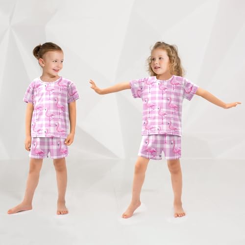 ALAZA Flamingo on Plaid Pajamas Short Sleeve 2 Piece Sleepwear Top and Bottom Pajama Set Unisex 6